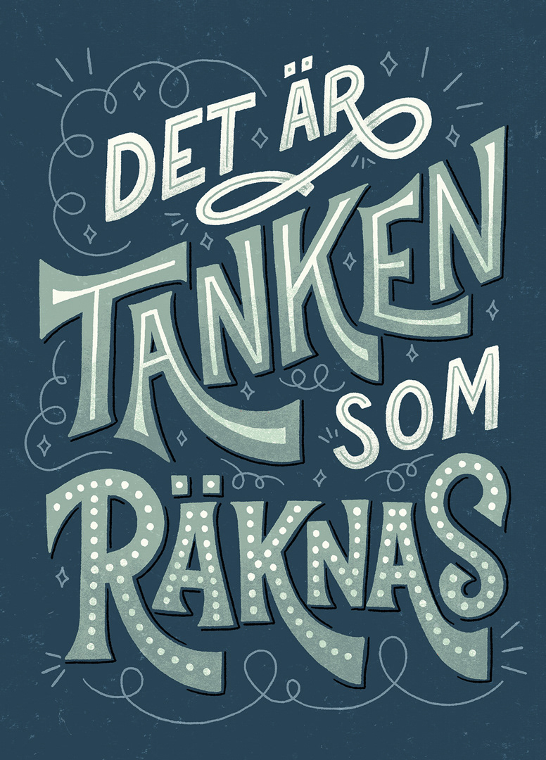 Swedish greeting card for Art Cards, 2019. Translation: "It's the thought that counts"